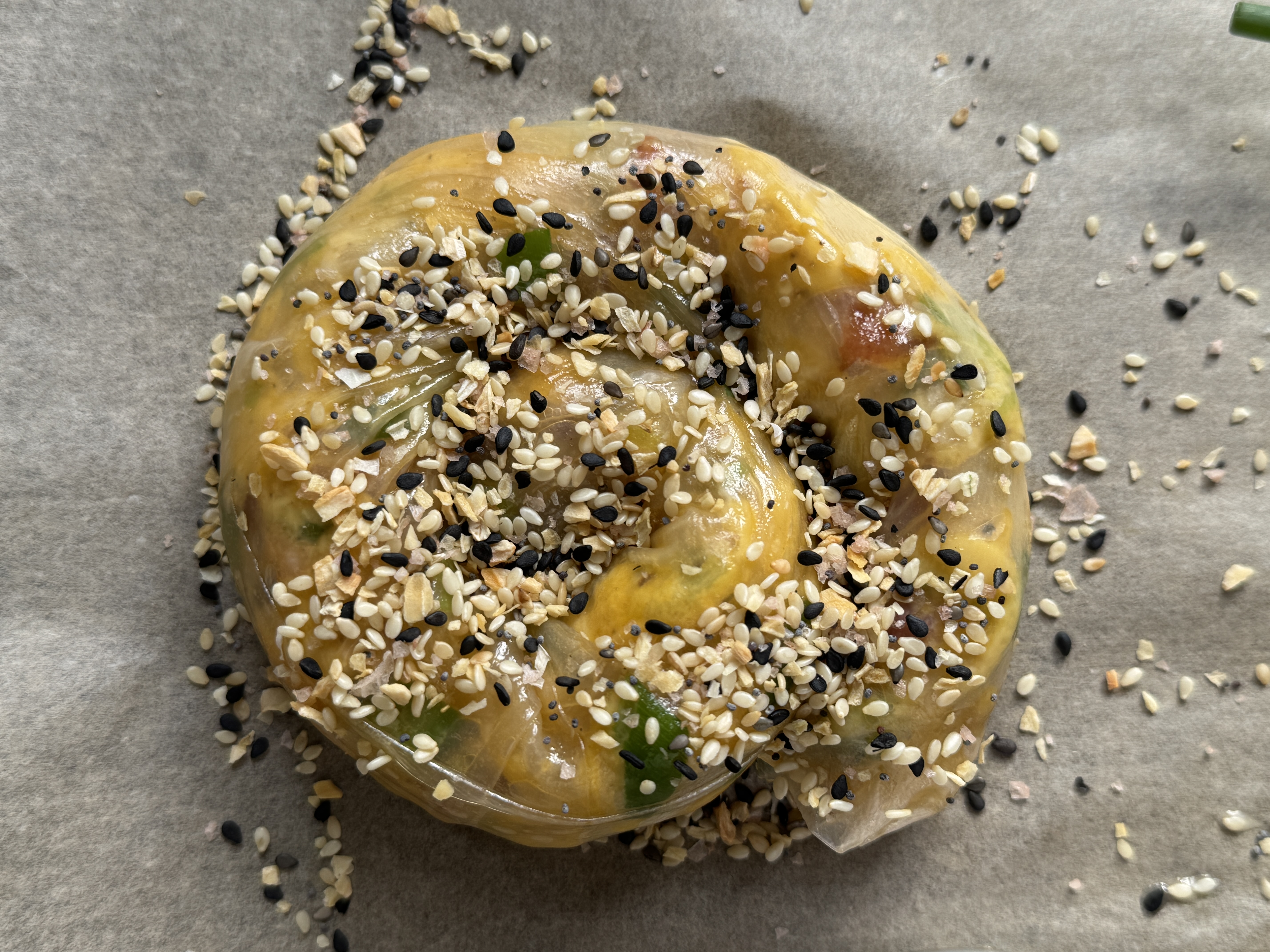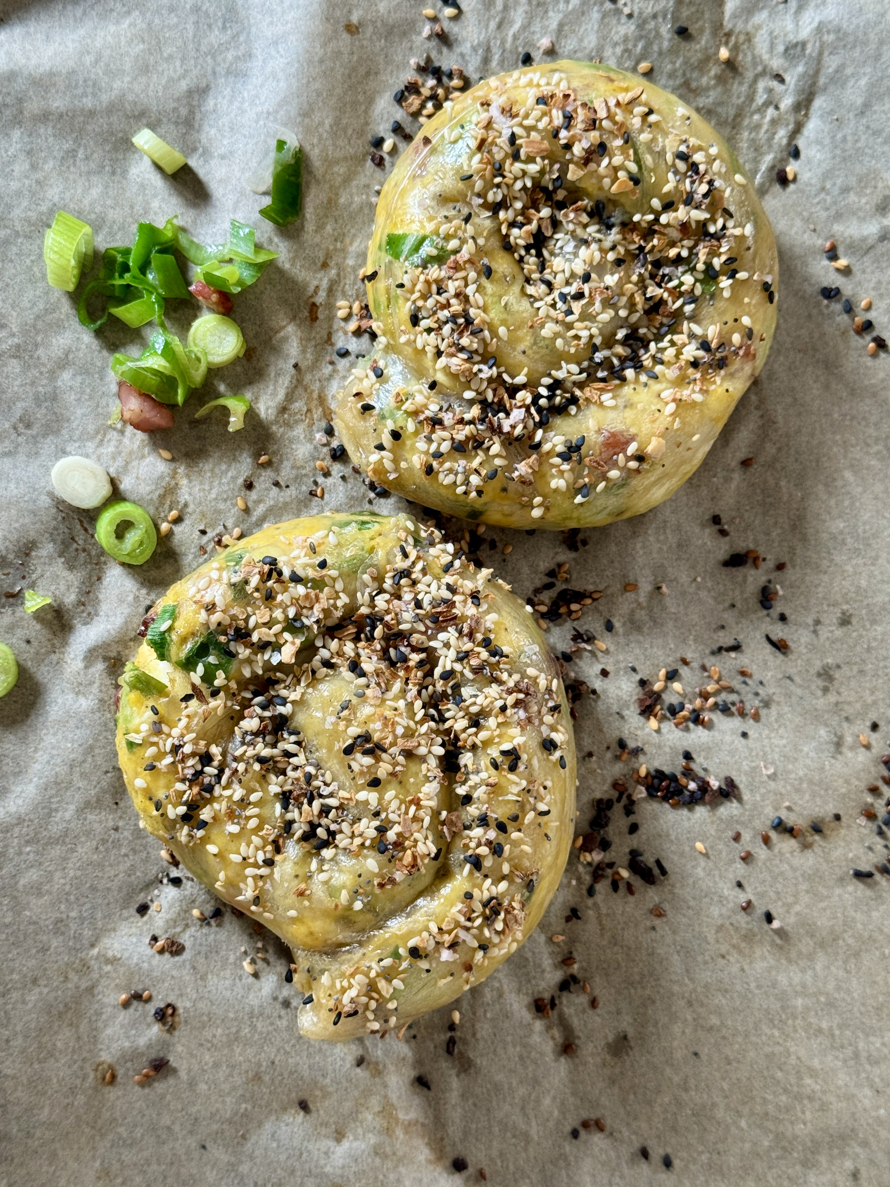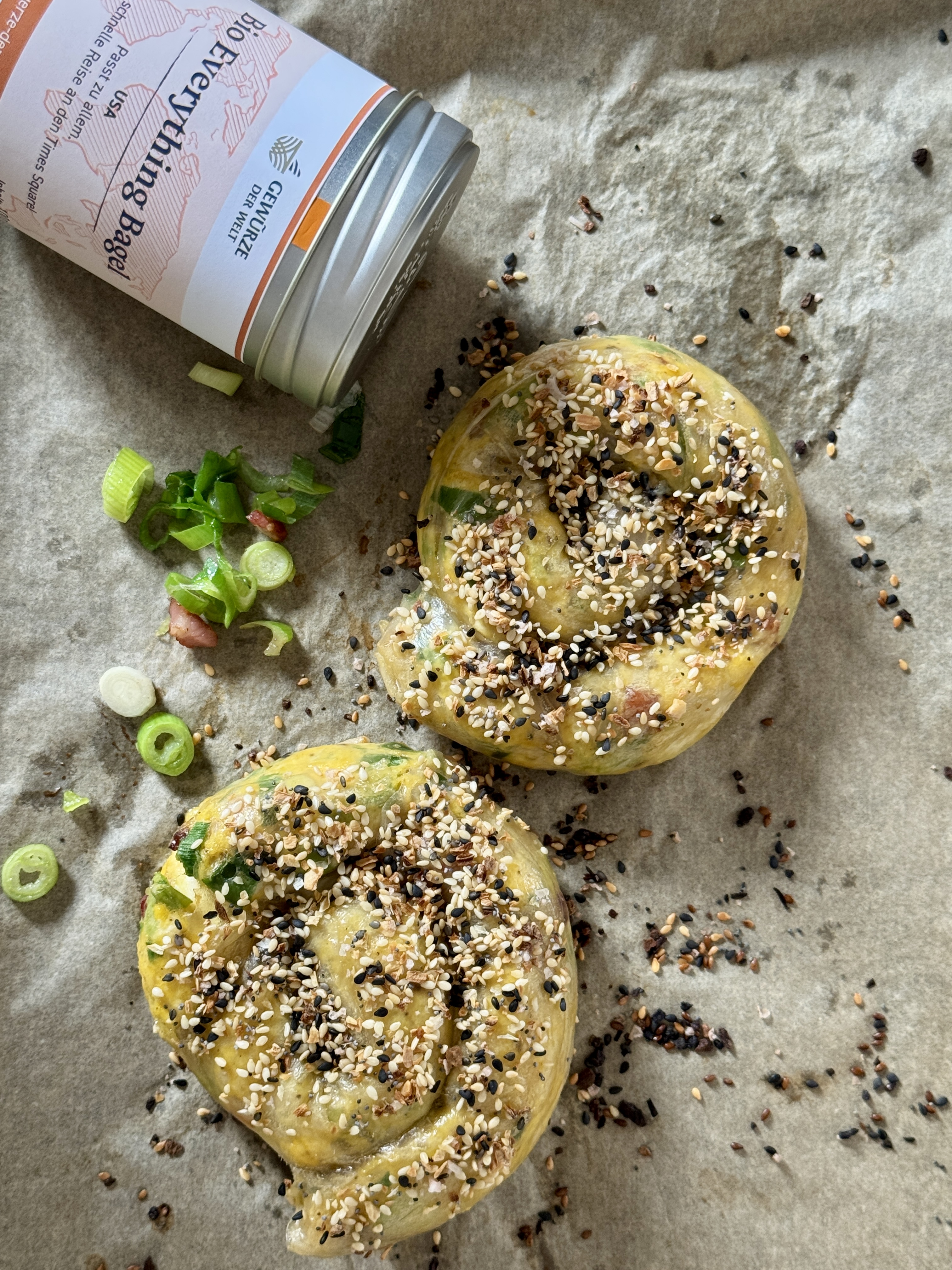 Ein köstlicher Netzfund: Unsere Everything-Bagel-Gewürzmischung kommt hier auf Reispapierschnecken, die mit Rührei und Frühlingszwiebeln gefüllt werden. Ganz, ganz lecker, vor allem an einem späten Morgen oder zum Brunch…
