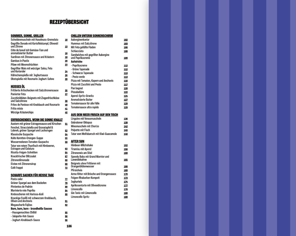 Mehr als Rezepte – inklusive Playlist für laue Nächte, Buchempfehlungen für den Liegestuhl, sommerlichen Filmtipps und Geheimadressen für sonnige Auszeiten.