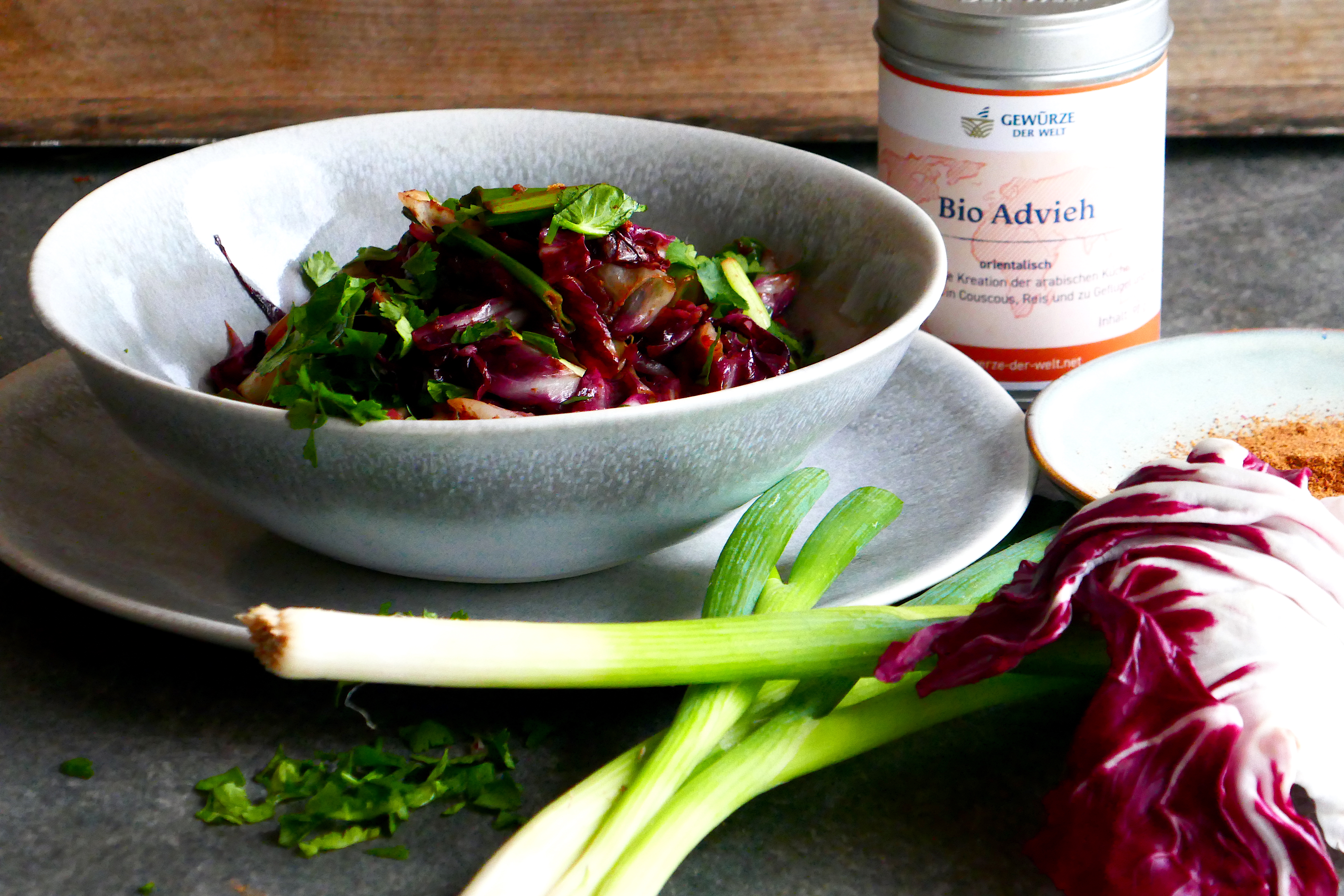 Heute tun wir nicht nur unserem Gaumen, sondern auch unserer Leber etwas Gutes und genießen Radicchio und Frühlingszwiebeln als Beilagen-Gemüse. Diese Gemüsesorten wirken entschlackend, entgiftend und harntreibend und enthalten dazu noch viel Eisen, Kalium sowie Kalzium.