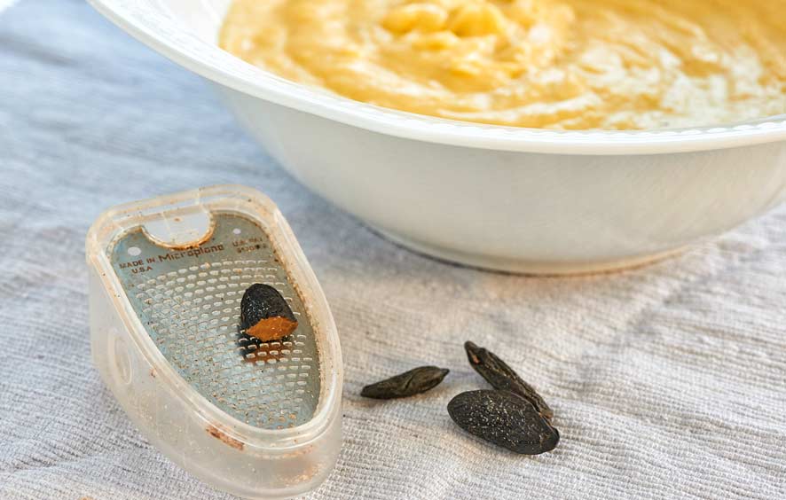 2 Blatt Gelatine ca. 5 Minuten einweichen. Stärke mit 2 - 3 EL Milch und Eigelben glattrühren. Übrige Milch mit 55 g Zucker aufkochen. Stärke-Eigelb- Mischung zugeben, unter Rühren aufkochen, dann bei Seite stellen. Tonkabohne auf einer Muskatreibe fein reiben und unterrühren. Gelatine ausdrücken und unter die Puddingmasse rühren. Abgedeckt kaltstellen (auf unter 20° abkühlen lassen).