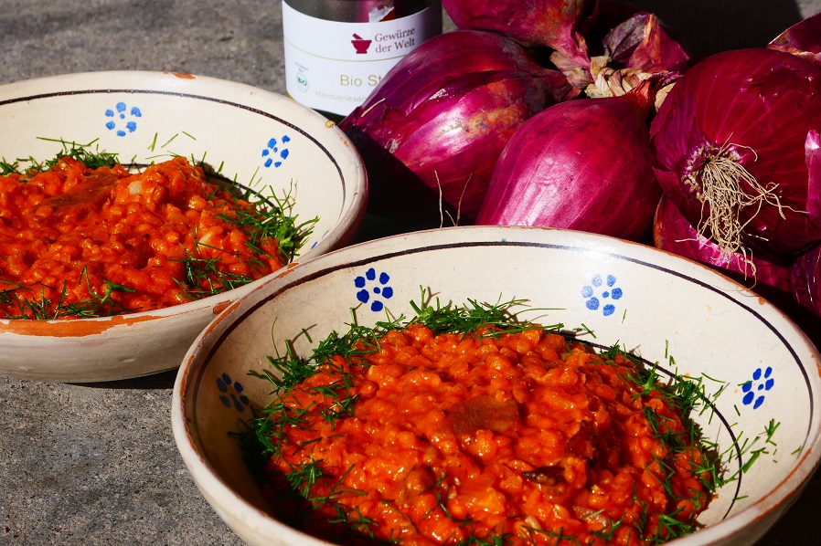 1rote Zwiebel, fein gewürfelt