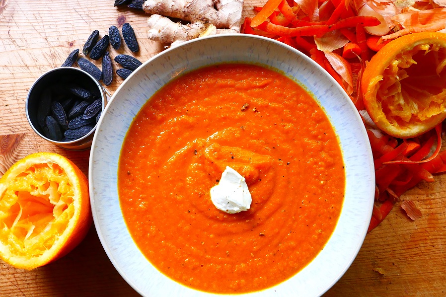 Hier kommt noch ein schnelles Süppchen für kalte, hektische Weihnachts-Tage. Mit der frisch geriebenen Tonkabohne erhält die Karottensuppe ein fantastisches, exotisches Aroma; Tonkabohnen schmecken süßlich, ähnlich wie Vanille, mit einem Hauch von Bittermandel. Die kostbaren Bohnen passen nicht nur in Süßspeisen!