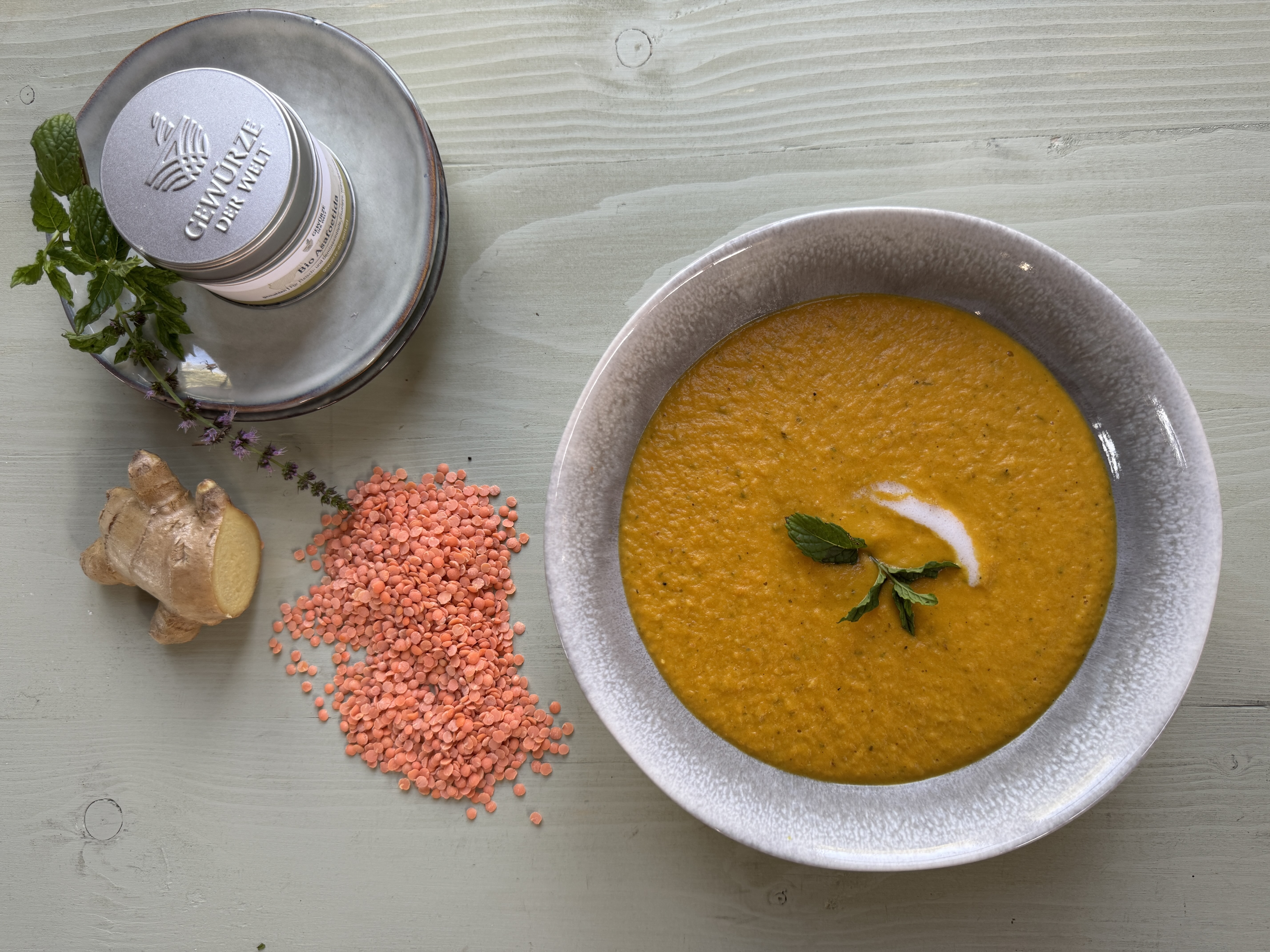 Ein feines Süppchen geht immer! Heute haben wir eine leichte ayurvedische Karotten-Minzsuppe zubereitet, die auch Dank einer Prise Asafoetida äußerst bekömmlich ist.