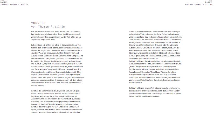 - Was sind die Grundlagen der Bitterstoffe, ihre gesundheitsfördernde Wirkung, ihre Bedeutung für die Geschmacksempfindungen? Und natürlich jede Menge Rezepte: von Crostini mit Lardo bis Süßlich-herber Kürbis-Bittero.