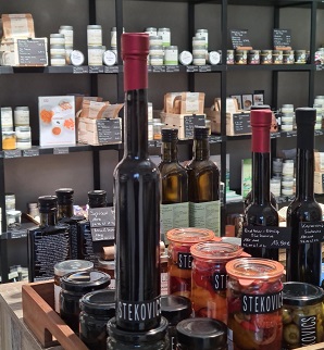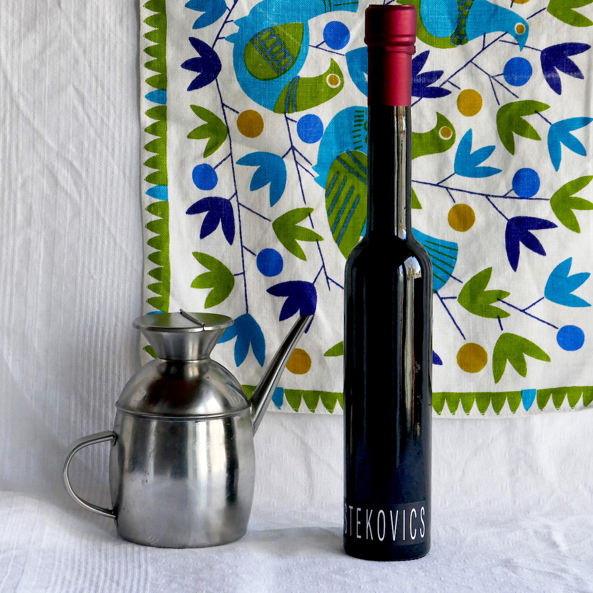 - Ein Essig aus dem Garten der Stekovics, aus der Nähe des Neusiedler Sees. Verarbeitet wird nur, was Priska und Erich Stekovic selbst züchten und ernten.