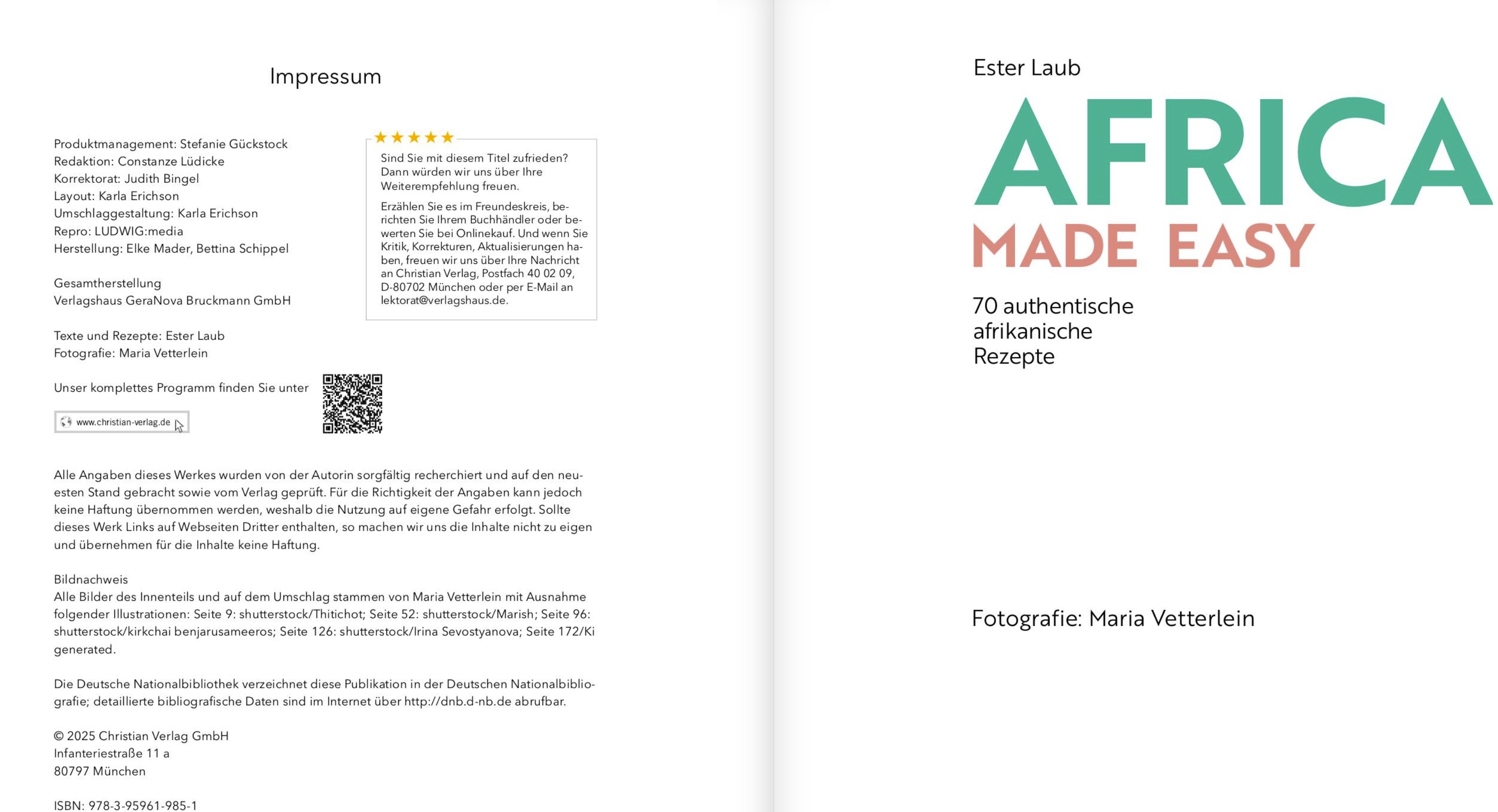 - Kennen wir äthiopische Injera, südafrikanische Milchtarte oder gar den gambischen Erdnusseintopf Domoda? Nein? Da kann geholfen werden! Außerdem hat die Autorin dankenswerterweise darauf geachtet, dass die Zutaten auch bei uns einfach zu bekommen sind.