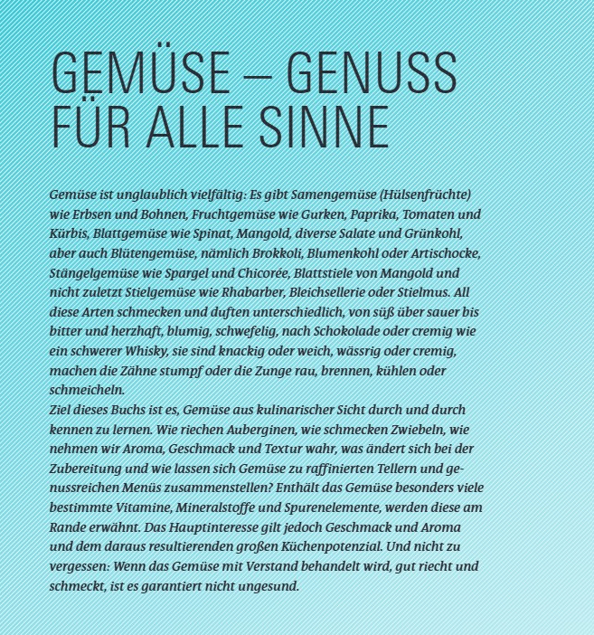 Stimmen zum Buch: „Wenn ich mir etwas hätte wünschen dürfen, wäre es dieses Buch gewesen. Mit wissenschaftlicher Präzision erklären Thomas Vilgis und Thomas Vierich Gemüse mit all seinen Facetten. Wunderbar verständlich, für den Laien wie für Kochprofis, mit spannenden Rezepten zum Nachkochen. Ein absolutes ,Must have‘.“ Thomas Bühner, Restaurant la vie, Osnabrück (3 Sterne Guide Michelin)