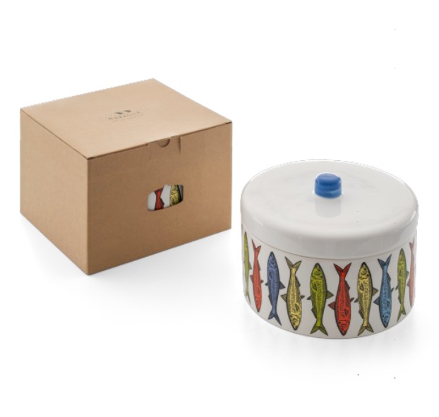 - Sardinen-Schale aus dem Hause Santopeccatore: Herrliche Deko-Schale für Gebäck, passend zu unseren Sardinen-Ölflaschen. Maße 22 x 16 cm.